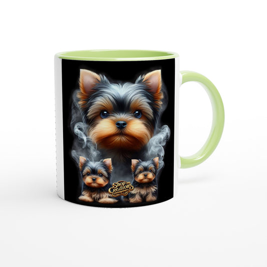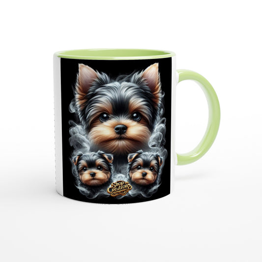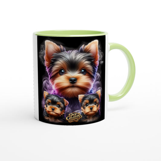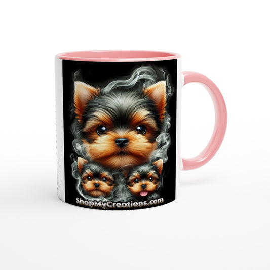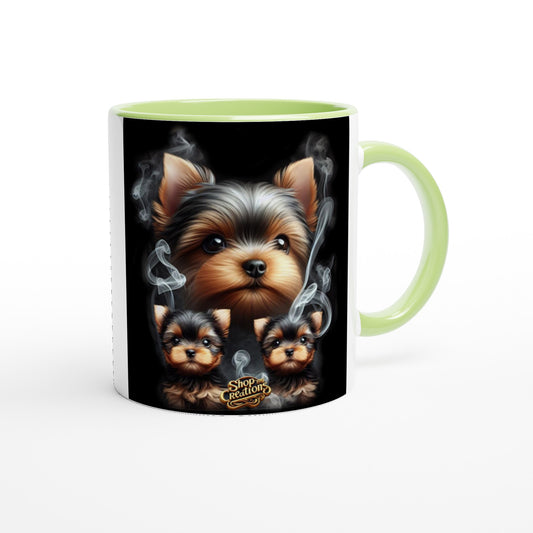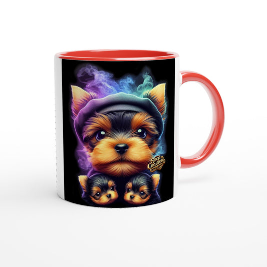 Tea Cup Yorkie Coffee Mug" 10 – Ceramic 11 oz Mug with Vibrant Colored Rim